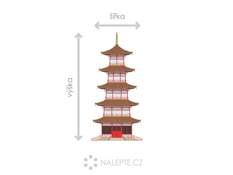 Pagoda je označení pre budhistickú vežovú stavbu. Vytvorte si z domu své malé královstvoí. S týmto monumentom dostane Váš byt úplne iný rozmer. Nech sa Vám líbí. Táto originální samolepka môže být Vaše! Jedná sa takzvane o vektorizovaný obraz, teda nemá takú kvalitu ako pôvodní fotografie, ale je možné ho ľubovoľne zväčšovať či zmenšovať - tu už k žádnué strata kvality nedochází. Výposledný motív pôsobí spíše dojmom maľby.