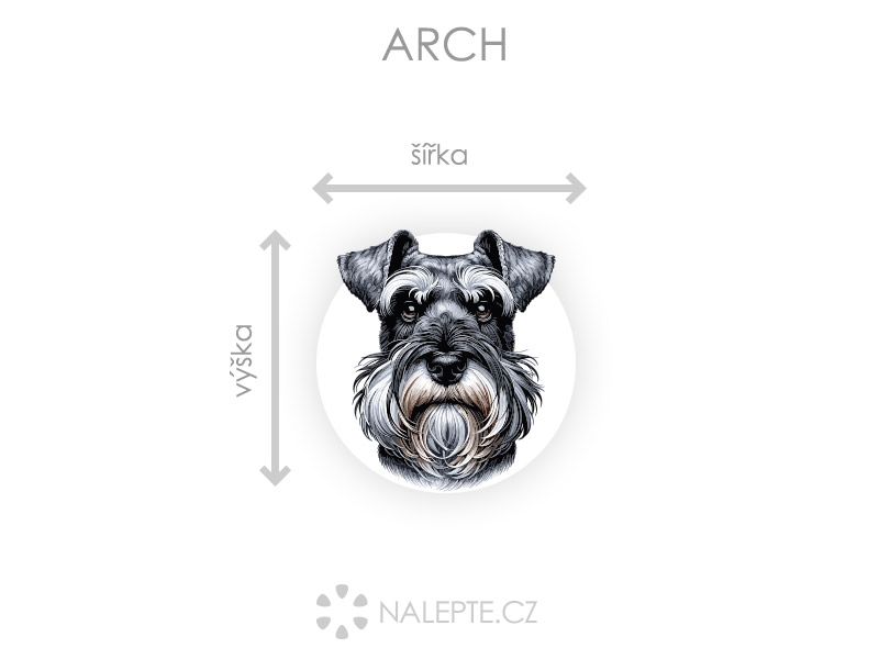 Arch = Arch si môžete prehliadnuť vo fotogalérii. Rozmer archu volíte v objednáke. Prehľad preddefinovaních rozmerov (šírka x výška): a) hárok 20 x 20 cm b) hárok 44 x 45 cm c) hárok 69 x 70 cm d) hárok 98 x 100 cm d) hárok 118 x 120 cm Je možné zvoliť aj ľubovoľneý vlastní rozmer hárku pomocí posuvníku alebo klikání na "Vetší", "Menší" Zaobstarajte si samolepku na stenu s motívom psa knírača. Tento milý štvornohý kamarád ozvláštní každý interiér a prinesie do neho veselú atmosféru.