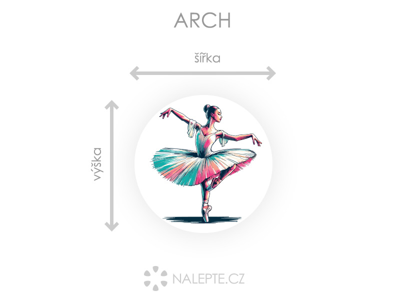Arch = Arch si môžete prehliadnuť vo fotogalérii. Rozmer archu volíte v objednáke. Prehľad preddefinovaních rozmerov (šírka x výška): a) hárok 20 x 20 cm b) hárok 45 x 45 cm c) hárok 75 x 75 cm d) hárok 100 x 100 cm e) hárok 120 x 120 cm Je možné zvoliť aj ľubovoľneý vlastní rozmer hárku pomocí posuvníku alebo klikání na "Vetší", "Menší" Samolepka na stenu vhodná pre malé tanečnice a baletky. Ozdobte izbu vaší dcérky touto samolepkou baletky v ľubovoľneé veľkosti. Vhodné kombinovať s ostatními baletkami z ponuky.