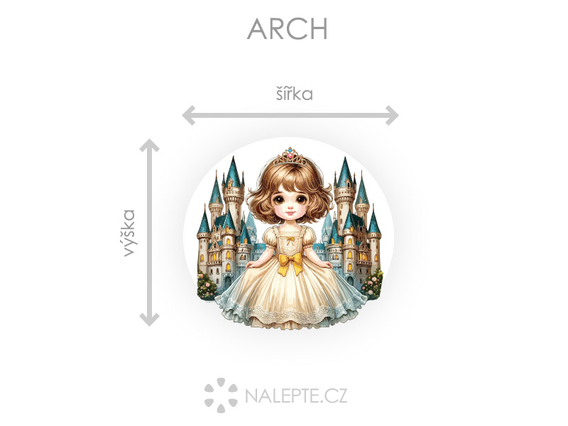 Arch = Arch si môžete prehliadnuť vo fotogalérii. Rozmer archu volíte v objednáke. Prehľad preddefinovaních rozmerov (šírka x výška): a) hárok 20 x 18 cm b) hárok 45 x 41 cm c) hárok 75 x 68 cm d) hárok 100 x 91 cm e) hárok 130 x 118 cm Je možné zvoliť aj ľubovoľneý vlastní rozmer hárku pomocí posuvníku alebo klikání na "Vetší", "Menší" princezná, princeznička, zámek, hrad