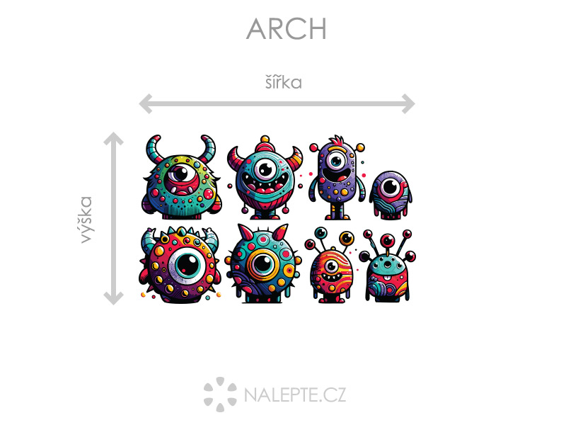 Arch = takto vám bude samolepka doručená. Každý prvok na archu je samostatná samolepka, jednotlivé části jednoduše od papírového podkladu odlepíte a nalepíte na stenu tak, aby zložili výposlední motív podľa Vašich predstáv. Arch si môžte prehliada'a vo fotogalérii. Rozmer archu volíte v objednáke. Prehľad preddefinovaních rozmerov (šírka x výška): a) hárok 47 x 28 cm b) hárok 75 x 45 cm c) hárok 100 x 61 cm d) hárok 126 x 77 cm Je možné zvoliť aj ľubovoľneý vlastní rozmer hárku pomocí posuvníku alebo klikání na "Vetší", "Menší"