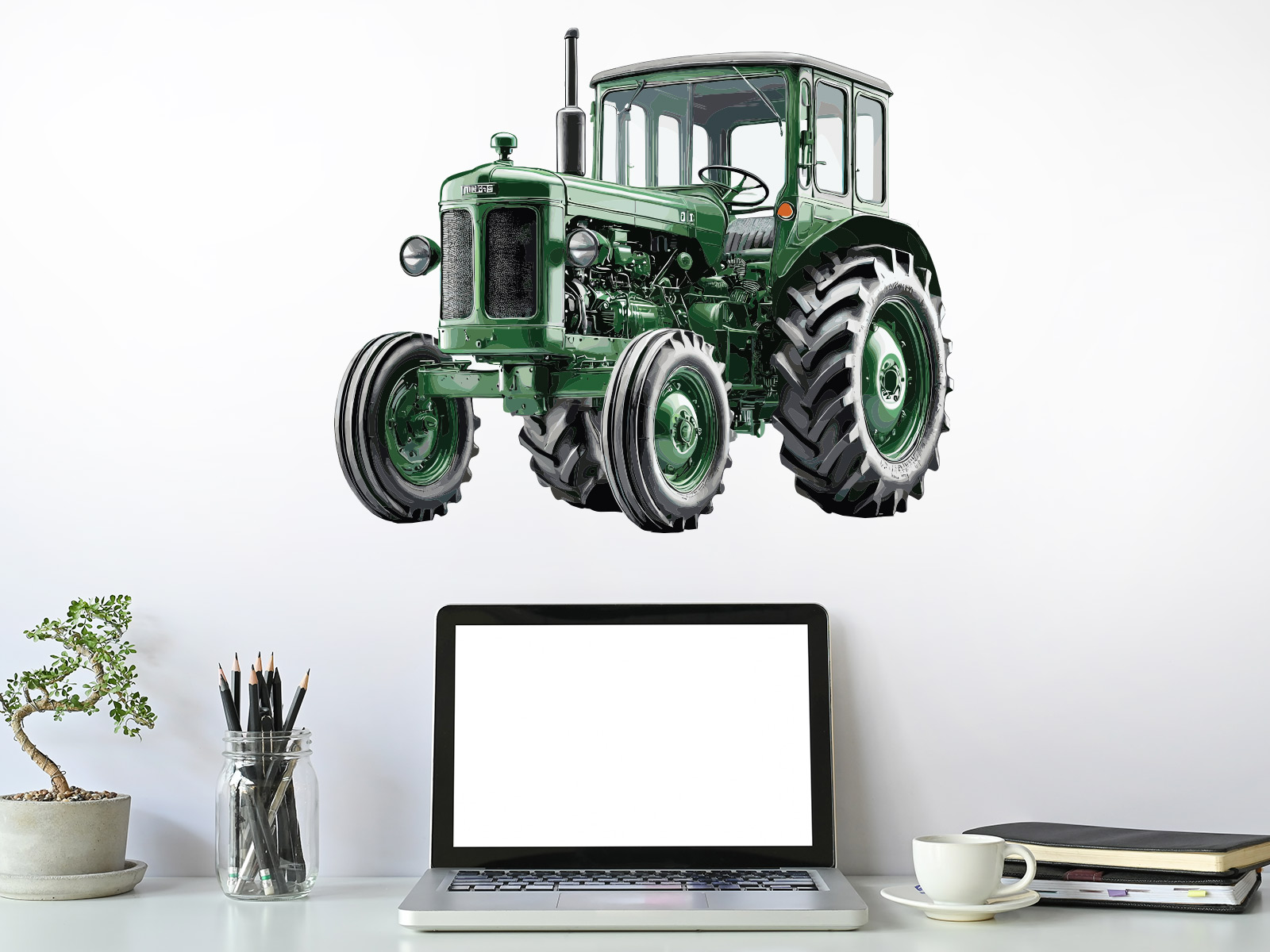 Samolepka na stenu „Retro traktor“ priáší do interiéru kúzlo poctivého remesla, nostalgiu vidieka a detailne spracovaý motív klasického traktora v autentickom retro štýle. Ilustrácia zaujme realistickími proporciami, výraznou zelenou farbou a starostlivo vykreslenými detailmi, ktoré dodávají motívu charakter a osobitosť. Skvele sa hodí do detskéej izby malých milovníkov techniky, na farmársky ladené steny, ale aj do interiérov, kde chcete vytvori originální akcent s nádychom tradície a histórie. Traktor pôsobí ako dominantní prvok, ktorý okamžite upútá pozornosť a dodá priestoru jedinečný štýl inšpirovaný svetom poľnohospodárstva; a klasických strojov.