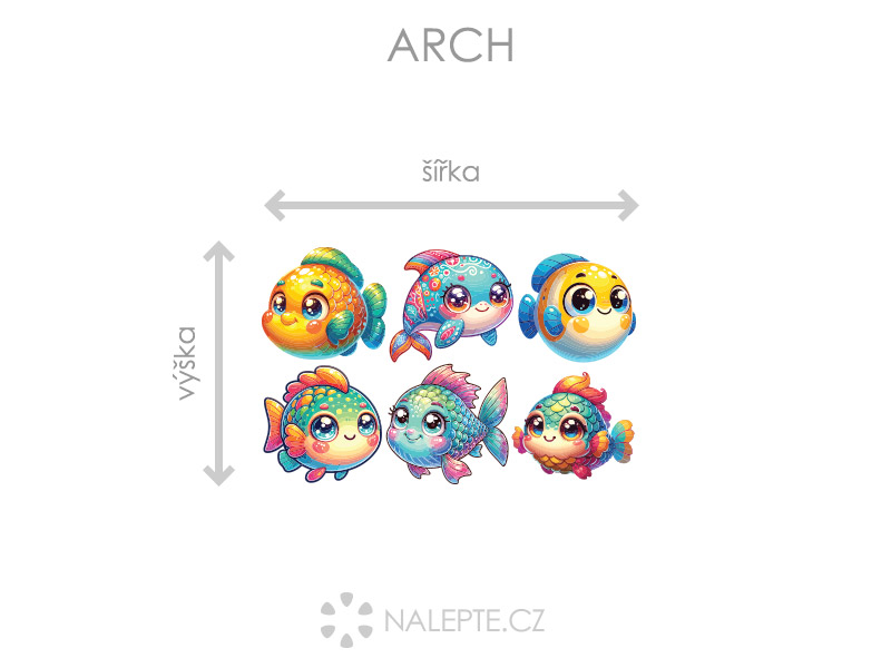 Arch = takto vám bude samolepka doručená. Každý prvok na archu je samostatná samolepka, jednotlivé části jednoduše odlepíte od papírového podkladu a nalepíte na stenu tak, aby zložili výposledný motív podľa Vašich predstáv. Arch si môžte prehliada'a vo fotogalérii. Rozmer archu volíte v objednáke. Prehľad rozmerov (šírka x výška): - hárok 47 x 30 cm - hárok 77 x 49 cm - hárok 100 x 63 cm - hárok 130 x 82 cm Je možné zvoliť aj ľubovoľneý vlastní rozmer hárku pomocí posuvníku alebo klikání na "Vetší", "Menší" Samolepky na stenu roztomilé farebné rybičky sa hodí ako doplnok pre každý detský izba. Tento produkt prináší do izby vašich deí kúzlo podmorského sveta s hravými, veselými rybičkami. Každá rybička je detailne spracována s výraznými a živými farbami, ktoré rozzáriaí detský izba. Každý prvok z archu sa lepí samostatne, je možné voliť ľubovoľnú veľkosť hárku a také je možné ho zrkadlovo otočiť.
