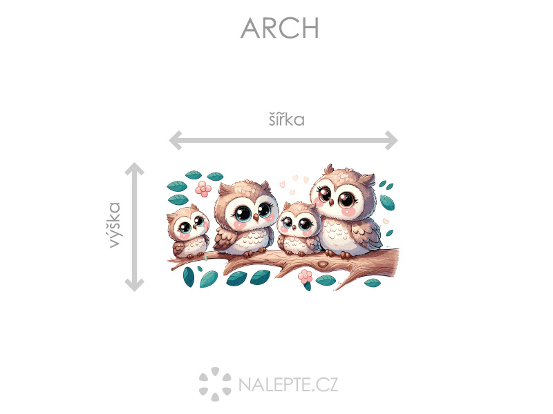 Arch = takto vám bude samolepka doručená. Každý prvok na archu je samostatná samolepka, jednotlivé části jednoduše od papírového podkladu odlepíte a nalepíte na stenu tak, aby zložili výposlední motív podľa Vašich predstáv. Arch si môžte prehliada'a vo fotogalérii. Rozmer archu volíte v objednáke. Prehľad preddefinovaních rozmerov (šírka x výška): a) hárok 47 x 26 cm b) hárok 75 x 41 cm c) hárok 100 x 55 cm d) hárok 137 x 75 cm Je možné zvoliť aj ľubovoľneý vlastní rozmer hárku pomocí posuvníku alebo klikání na "Vetší", "Menší"