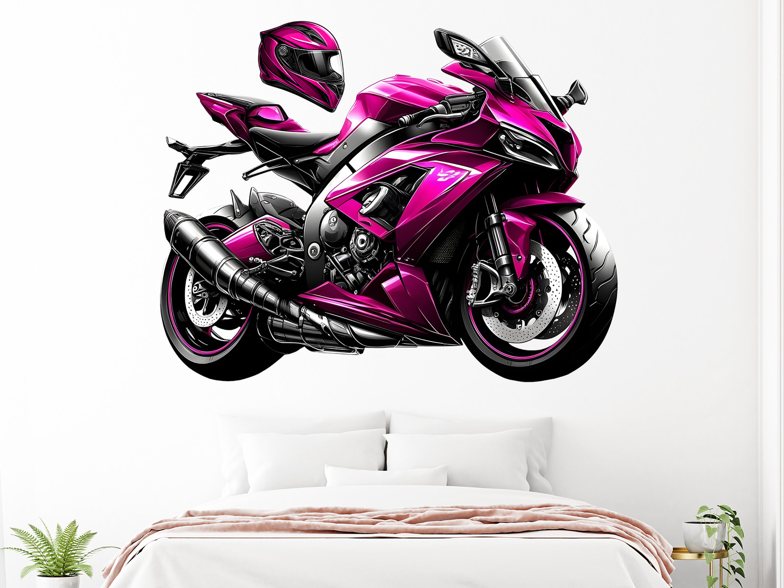 Samolepka na stenu „Ružová motorka“ je dokonalým doplnkom pre všetky malé aj velké milovníky rýchlosti, štýlu a výrazného dizajnu. Táto moderní ilustrácie športoví motorky v zárivé ružové farbe zaujme svojimi dynamickyími líniami, lesklými detailmi a realistickým prevedím, ktoré pôsobí, ako by stroj právo vyrazil zo závodní dráhy. Súčástí hárku je aj štýlová helma v rovnakom farebnom urobení, díky čomu si môzete vytvori ucelenú dekoráciu presne podºa svojich predstáv. Skvele sa hodí do detských izieb, herních zón, garáží či izieb tínedžerov a dodá priestoru výraznú energiu, odvahu a závodního ducha.