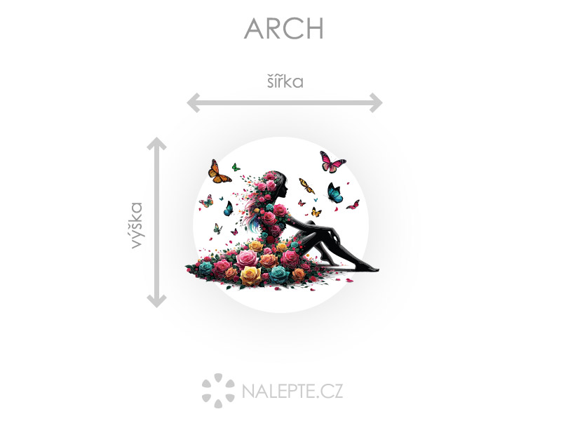 Arch = Arch si môžete prehliadnuť vo fotogalérii. Rozmer archu volíte v objednáke. Prehľad preddefinovaních rozmerov (šírka x výška): a) hárok 20 x 18 cm b) hárok 45 x 40 cm c) hárok 75 x 67 cm d) hárok 100 x 90 cm e) hárok 130 x 117 cm Je možné zvoliť aj ľubovoľneý vlastní rozmer hárku pomocí posuvníku alebo klikání na "Vetší", "Menší" Pestrofarebná kvetinová dívka s motýlkami ako úžasná dekorácia do dívrího izby, ktorá ho prezáriaí jasnými farbami a vykúzlí úsmev na tvárích všoch malých dievčatiek.