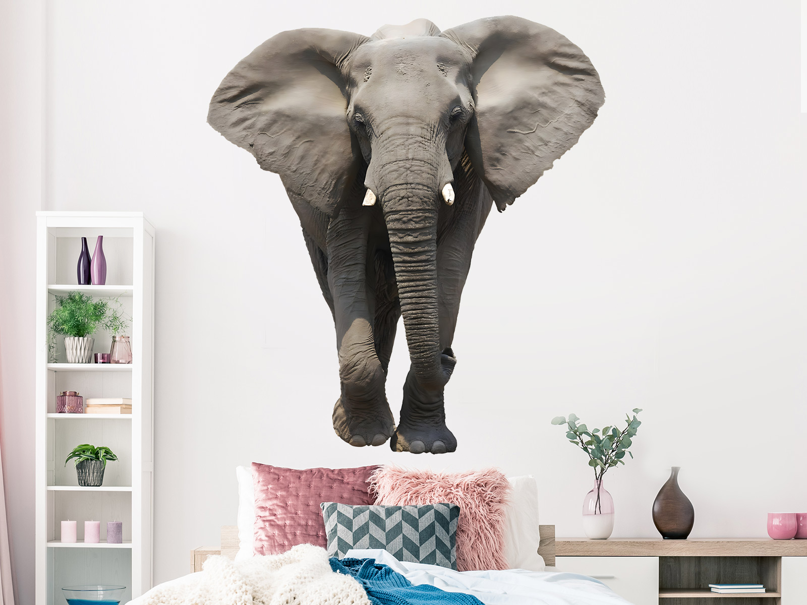 Samolepka na stenu so slonom priáší do interiéru silný, ale zároveň pokojný prírodní motív, ktorý okamžite upútá pozornosť a dodá priestoru jedinečnú atmosféru. Realistické stárnení slona pôsobí majestátne a prirodzene, takže sa skvele hodí nie len do detskej izby pre malé milovníky zvírat, ale aj do spálne, obývacího izby alebo pracovne, kde vytvorí výrazný dizajnový prvok. Díky čistému spracování a neutrálním tónom sa jednoducho kombinuje s rôznymi štýlmi zaízení, od minimalistického až po prírodní alebo boho interiér, a na stene pôsobí ako skutočnýý vizuální zážitok, ktorý dodá místnosti hĺbku, pokoj a nádych exotiky.