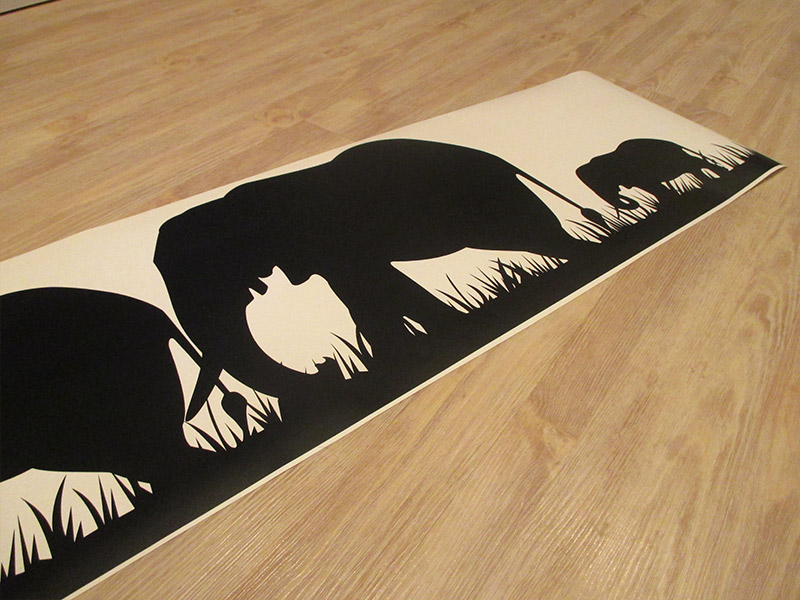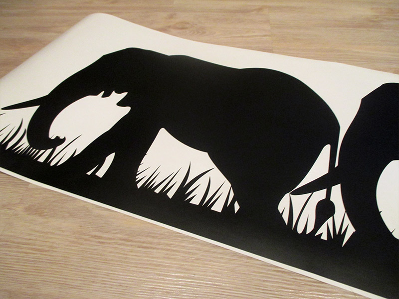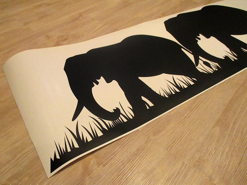 Romantická samolepka so sloňou rodinou kráčajúcou africkou plánou. Zaobstarajte si túto originálnu samolepku na stenu aj do svojej obývacej izby či kuchyne a zaplňte nudné biele miesto na stene.