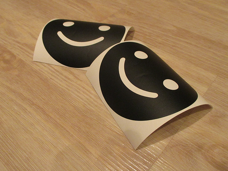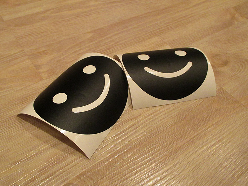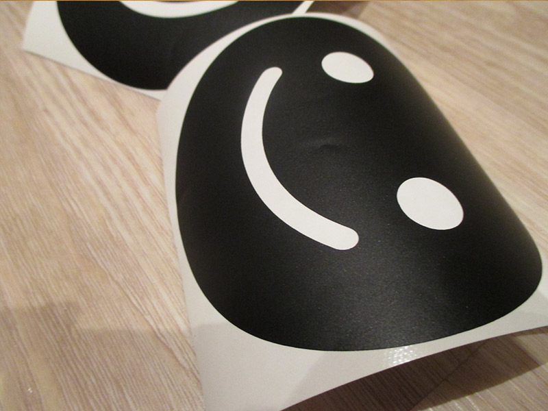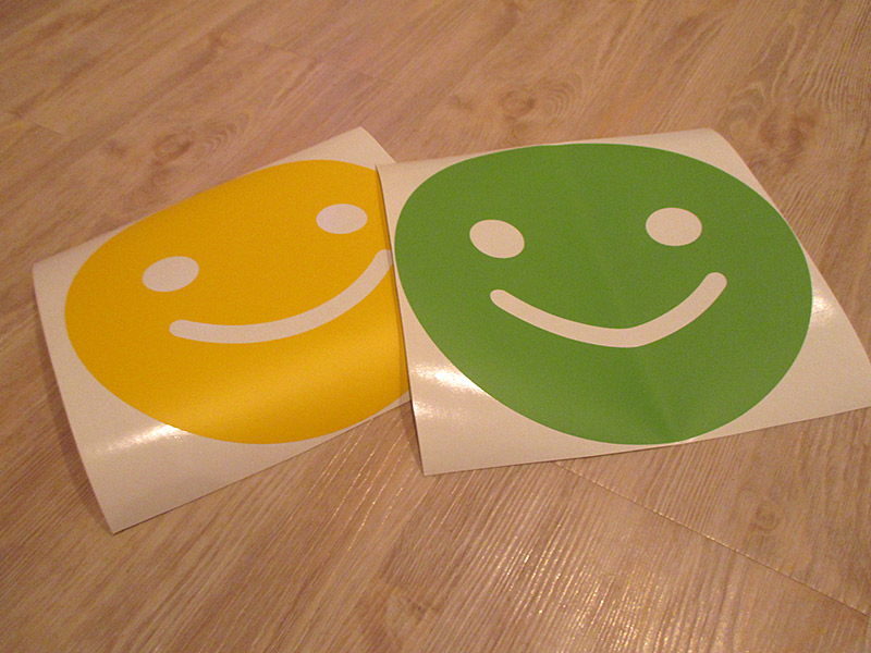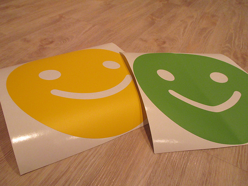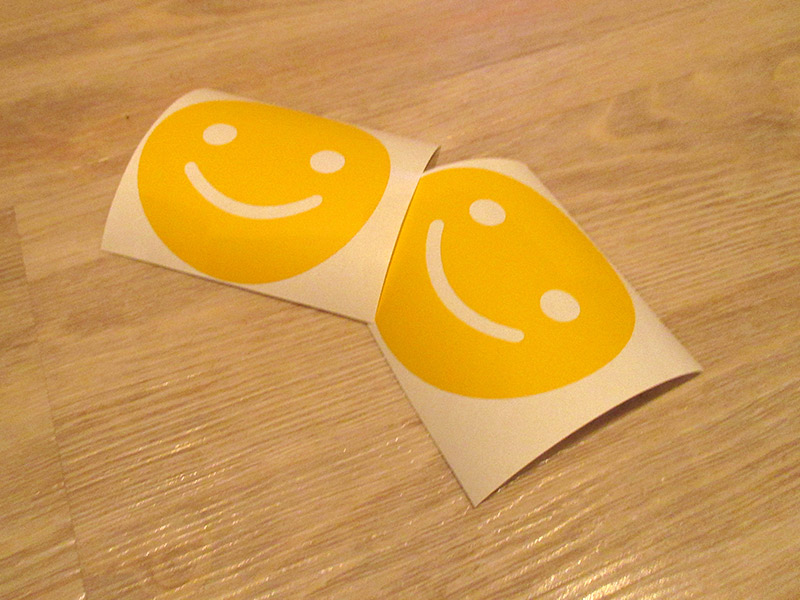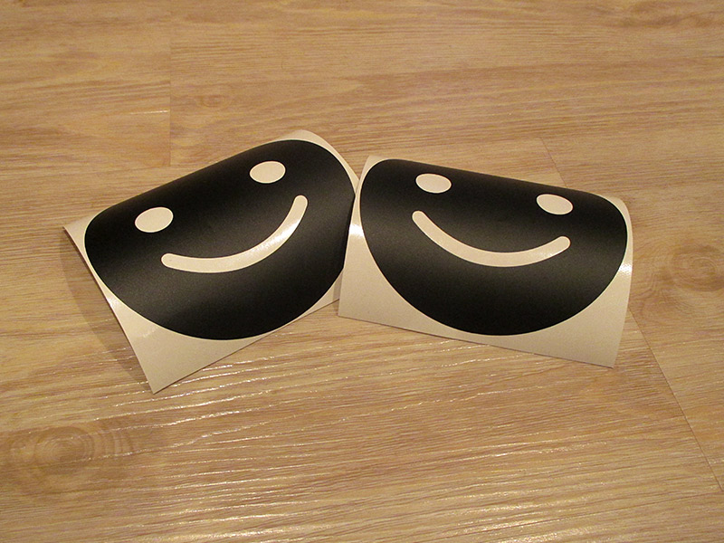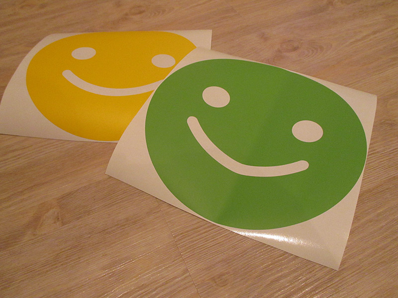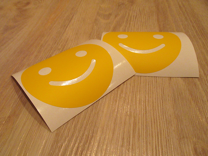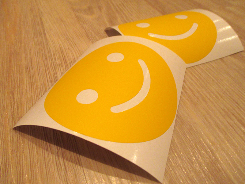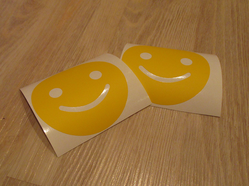 Smejem sa a smejem sa rád! Táto usmievavá samolepka môže být Vaše. Stačí zvoliť požadovanú farbu, rozmer a počet a veselo nalepovať. Pre dobrú náladu na každý deň. Jedná sa o tlač na bielu samolepící vinylovú fóliu s vonkajším tvarovým orezom. Oči a úsmev je vždy bílý, lepení bez priehľadné prenosové fólia. Ide teda o kombináciu bílé + Vámi vybrané farby. Avšak ak zvolíte bílou + bílú farbu 010 alebo niektorú z metalických farieb tj. 090 striíbrná alebo 092 medený, bude vyrobený ako rezaný; grafika tj oči a "smiev bude rešen výrezom a samolepka bude opatrená prenosovou fólií."