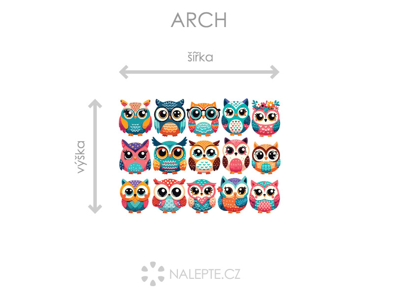 Arch = takto vám bude samolepka doručená. Každý prvok na archu je samostatná samolepka, jednotlivé části jednoduše od papírového podkladu odlepíte a nalepíte na stenu tak, aby zložili výposlední motív podľa Vašich predstáv. Arch si môžte prehliada'a vo fotogalérii. Rozmer archu volíte v objednáke. Prehľad preddefinovaních rozmerov (šírka x výška): a) hárok 45 x 32 cm b) hárok 75 x 53 cm c) hárok 100 x 71 cm d) hárok 140 x 100 cm Je možné zvoliť aj ľubovoľneý vlastní rozmer hárku pomocí posuvníku alebo klikání na "Vetší", "Menší"