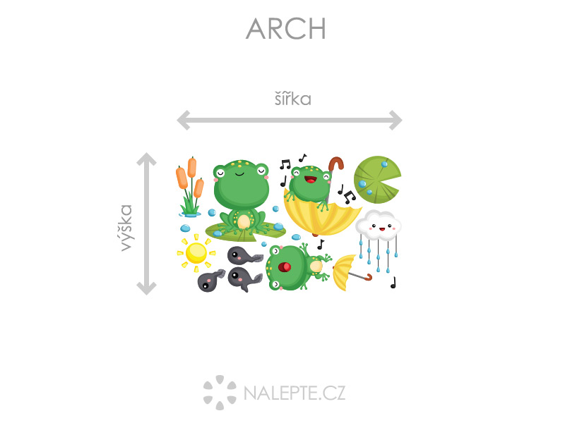 Výposledný rozmer = rozmer po nalepení na stenu podľa hlavní produktové fotografie (samozrejme môžete rozlepiť prvky úplne ľubovoľne a získáte úplne iné výposledné rozmery). Arch = takto vám bude samolepka doručená. Z hárku jednotlivé části odlepíte a nalepíte na stenu tak, aby zložili výposledný motív podľa Vašich predstáv. Arch si môžte prehliada'a vo fotogalérii. Rozmer archu volíte v objednáke. Prehľad rozmerov (šírka x výška): a) výposledný rozmer 72 x 30 cm = hárok 48 x 30 cm b) výposledný rozmer 112 x 46 cm = hárok 75 x 46 cm c) výposledný rozmer 150 x 62 cm = hárok 100 x 62 cm d) výposledný rozmer 316 x 130 cm = hárok 211 x 130 cm
