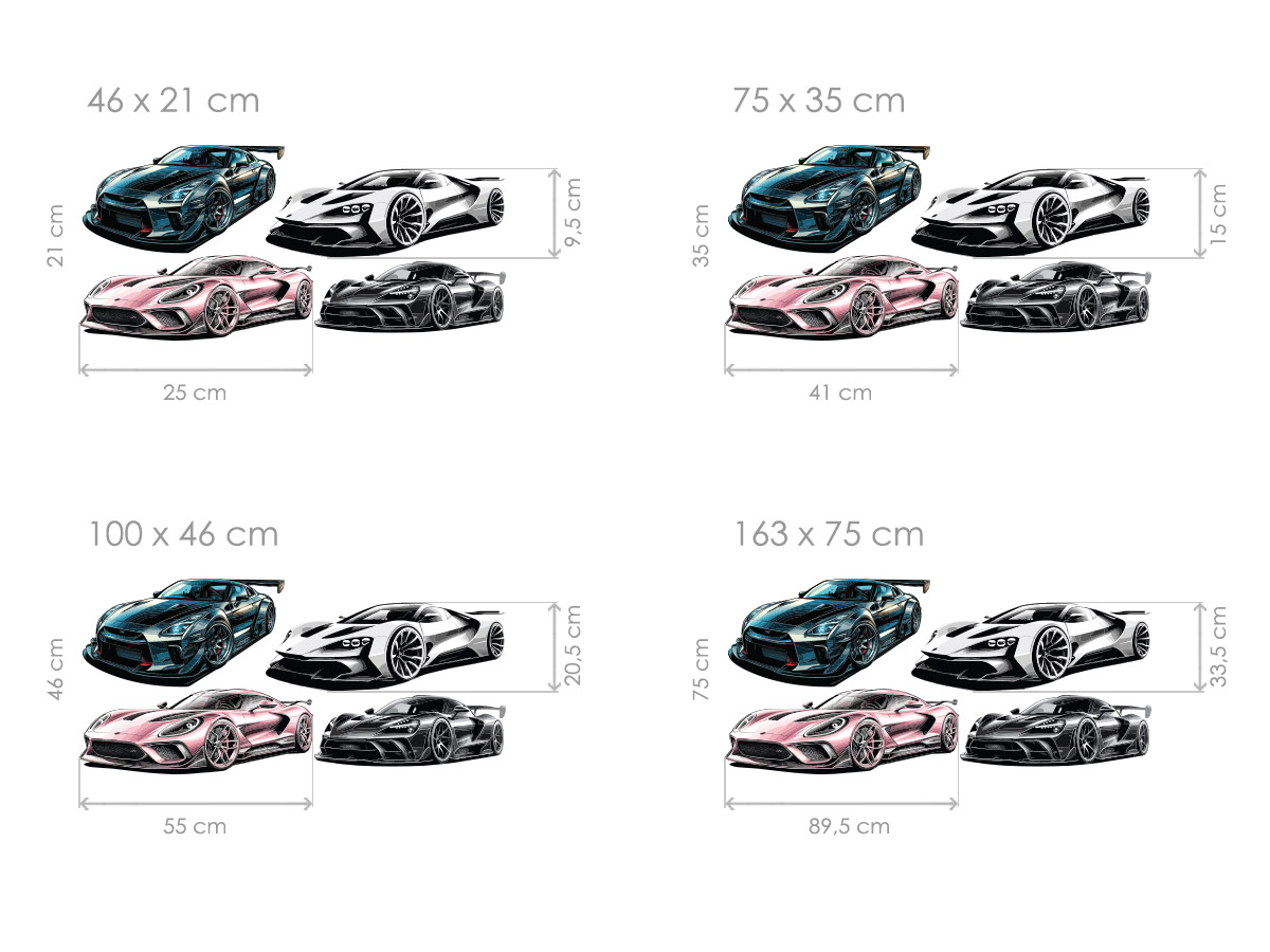 Samolepka na stenu „Športovní autá – sada“ priáší do detskej izby, herne i štýlového interiéru dynamiku, rýchlosť a svet moderných superšportov. Sada obsahuje niekoľko detailne spracovaných športových vozidiel v rôznych farebných variantoch, ktoré je mo|né na stenu rozmísti† poda vlastní fantázie a vytvoriť tak originální kompozíciu plnú pohybu a energie. Ilustrácia pôsobí realisticky, zároveň ale hravo, takže osloví malé milovníky áut aj starší Fanúšikovia automobilového dizajnu. Celok dodá priestoru výrazný vizuální akcent, podporí atmosféru dobrodružstvaí a premení stenu v závodneí galériu plnú štýlu a emocí.