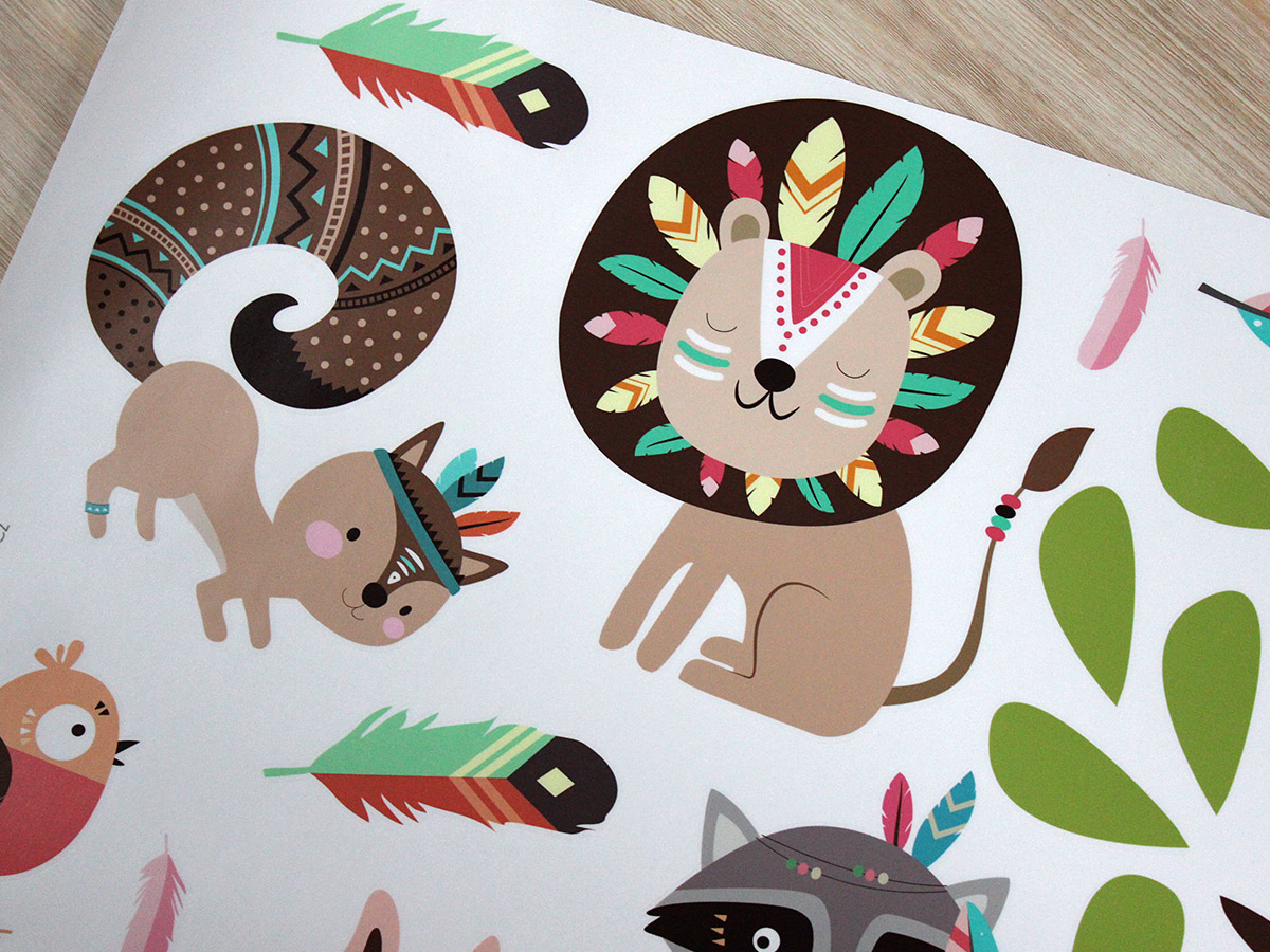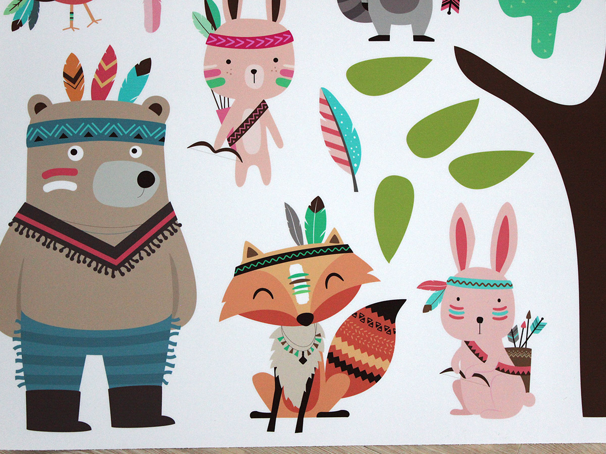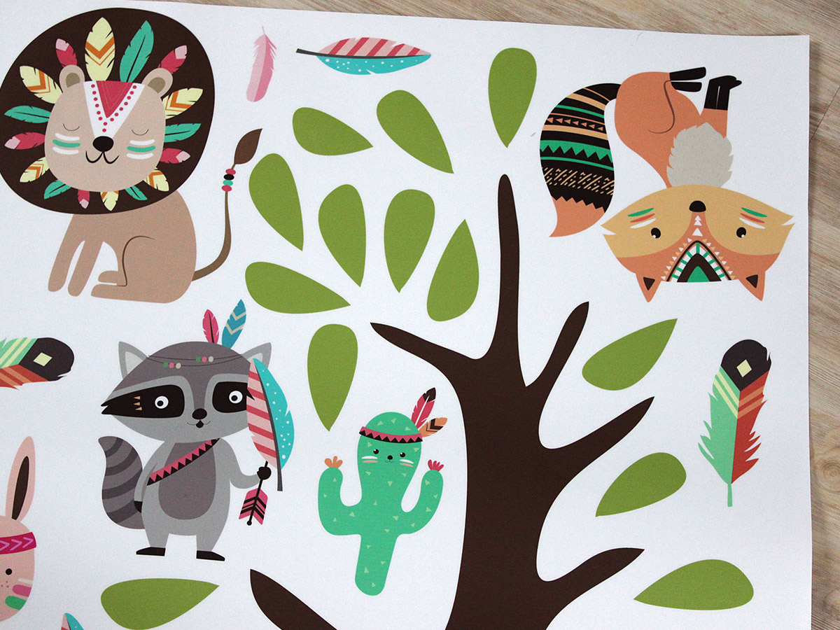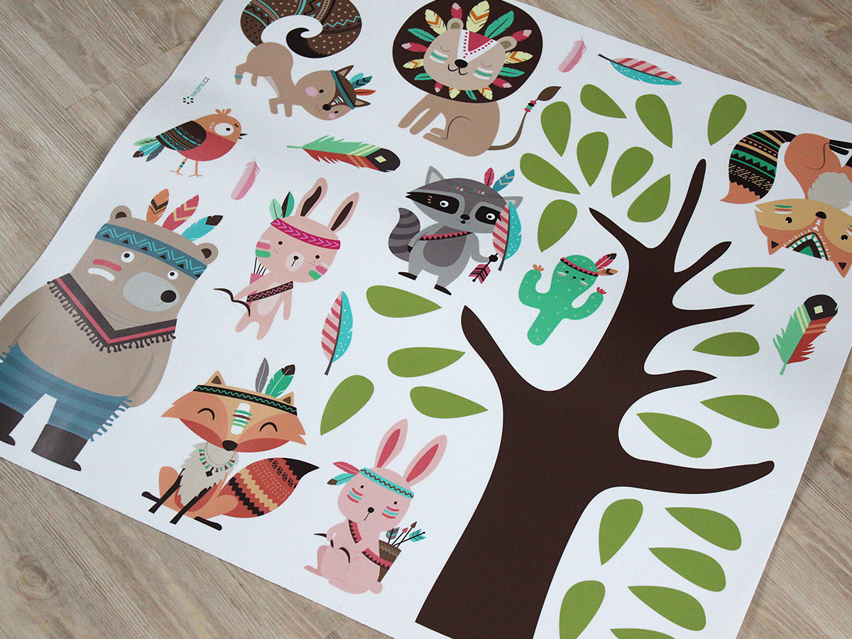Okúzlite své deti roztomilími a veselými samolepkami na stenu s motívom Strom a zvírka indiánej. Každé zvírátko má svoj vlastní indiánský vzh&ad, čo vytváraí hravú a dobrodružnú atmosféru. Farebneé samolepky pridají do detskej izby veľa života a radosti. Samolepky sú vyrobené z kvalitního materiálu a môzete ich umístit, kamkolvek chcete. Možnos zmeny veľkosti a zrkadlového otočení.