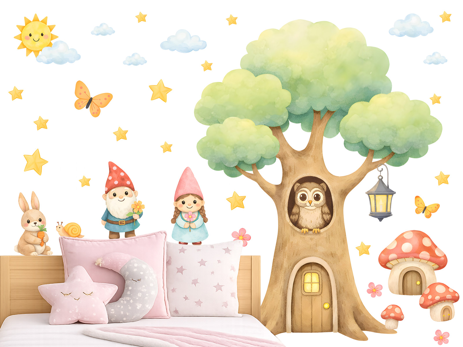 Samolepky na stenu Strom ako z pohádky premení detský izba v kúzelneé místo plné fantázie. Jemne malovaný strom s domčekom, sovičkou, škriabkami, krílíčkom a hubami vytvára&´ pohádkovú atmosféru, ktorá podporuje detskú predstavivosť a pocit pokoja. Samostatneé samolepky je možné ľubovoľne rozmiestniť na stenu a prispôsobiť ich priestoru i veku diaťate. Ideální voľba pre útulný detský izba, herničku alebo čítačí kútik.