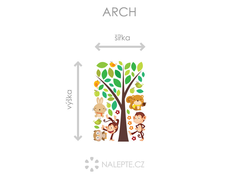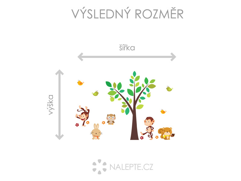 Výposledný rozmer = rozmer po nalepení na stenu podľa hlavní produktové fotografie (samozrejme môžete rozlepiť prvky úplne ľubovoľne a získáte úplne iné výposledné rozmery). Arch = takto vám bude samolepka doručená. Z hárku jednotlivé části odlepíte a nalepíte na stenu tak, aby zložili výposledný motív podľa Vašich predstáv. Arch si môžte prehliada'a vo fotogalérii. Rozmer archu volíte v objednáke. Prehľad rozmerov (šírka x výška): - výposledný rozmer 68 x 50 cm = hárok 31 x 46 cm - výposledný rozmer 110 x 82 cm = hárok 50 x 75 cm - výposledný rozmer 147 x 110 cm = hárok 67 x 100 cm - výposledný rozmer 286 x 213 cm = hárok 130 x 194 cm Výška stromu odpovedídá výške hárku. Oživte detský izba s touto pohádkovou samolepkou na stenu, ktorá predstavuje strom plný veselých opičiek a dalších zvírátok. Táto farebná, zábavná a veselá samolepka je dokonalým doplnkom pre každý detský izba a nabízí skvelú možnosť, ako de•om priblížiť svet zvírať a priírody. Navíc je samolepka vyrobená z kvalitních materiálov, co zaručuje její dlhú životnosť. Motív je možné zrkadlovo otočiť a zvoliť ľubovoľneý rozmer hárku.