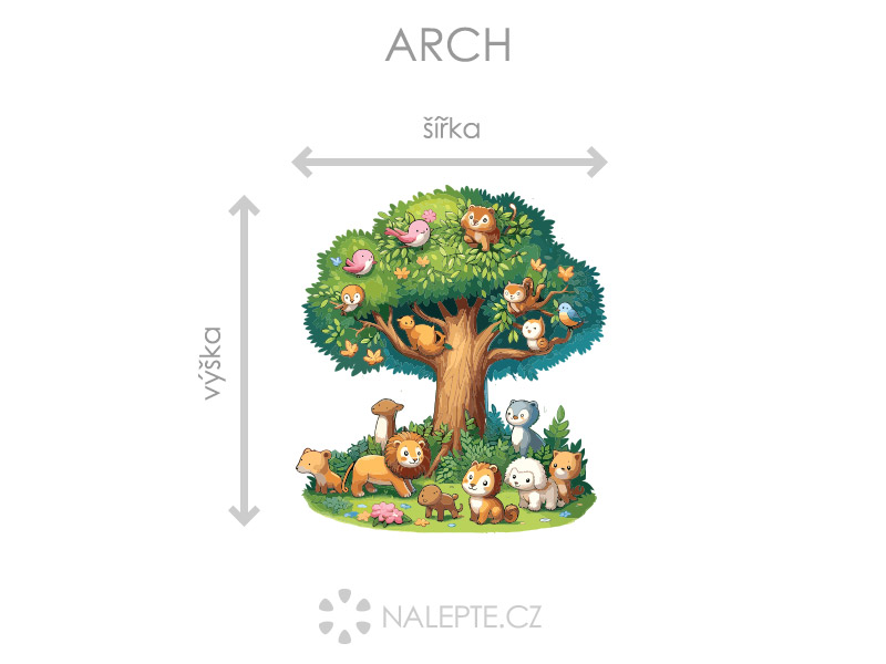 Arch = takto vám bude samolepka doručená. Každý prvok na archu je samostatná samolepka, jednotlivé části jednoduše od papírového podkladu odlepíte a nalepíte na stenu tak, aby zložili výposlední motív podľa Vašich predstáv. Arch si môžte prehliada'a vo fotogalérii. Rozmer archu volíte v objednáke. Prehľad preddefinovaních rozmerov (šírka x výška): a) hárok 40 x 45 cm b) hárok 67 x 75 cm c) hárok 89 x 100 cm d) hárok 116 x 130 cm Je možné zvoliť aj ľubovoľneý vlastní rozmer hárku pomocí posuvníku alebo klikání na "Vetší", "Menší"