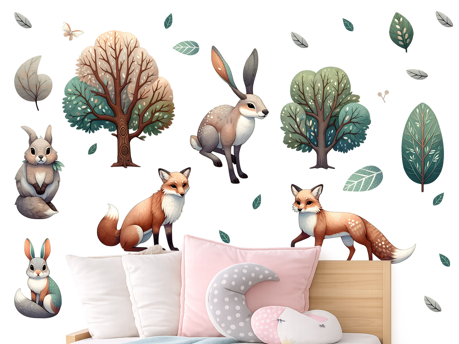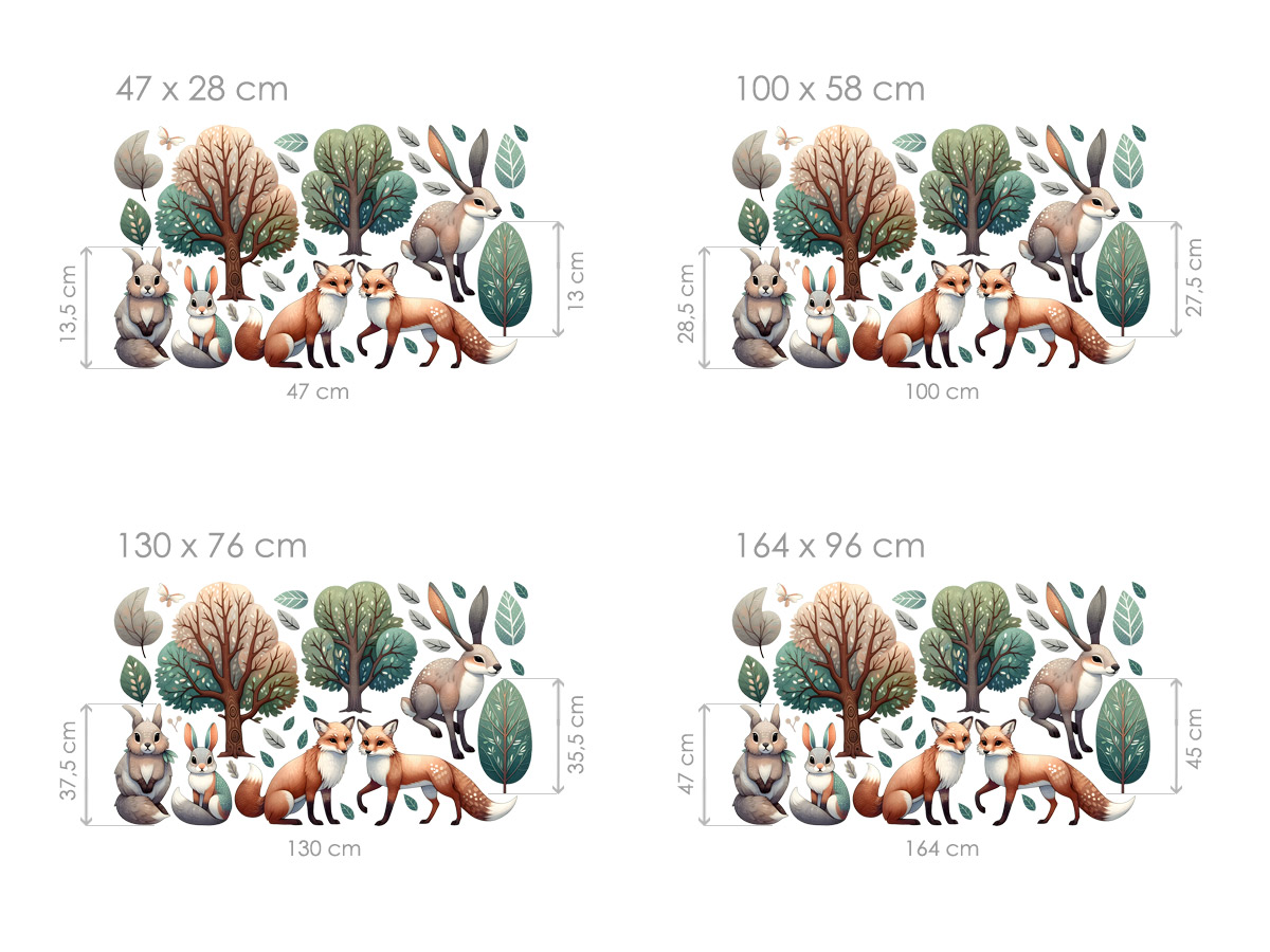 Samolepka na stenu Stromy so zvíarmi prinesie do detskej izby pokojnú atmosféru lesa plnú pri´telskích zvígrích kamará Jemné ilustrácie stromov, lišiek, zajaíkov a dalších lesních obyvateľov sú ladené do prírodních, tlmených farieb, ktoré pôsobí harmonicky a nadčasovo. Díky jednotlivým samostatným prvkom si môzete motívy ľubovolne rozmísti##################¢ e 3. fantázie a vytvoriť tak originální lesní scenériu. Samolepka je ideální do detskej izby, herne a čítacieho kútika, kde pomáhajú há navodi pocit pohody, bezpečí a blízkosti prírody a zároveň podporuje detskú predstavivosť a fantáziu.