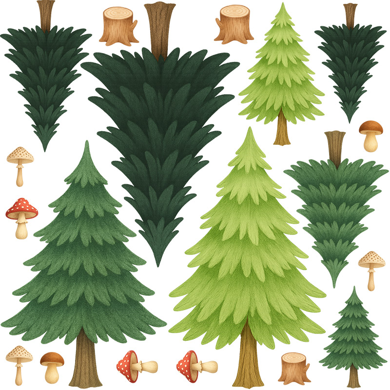 Nálepka na stenu “Súprava ihličnatých stromov“ priniesťš´ kúzlo lesa v jemnom, ručne ilustrovanom štýle, ktorý pôsobí upokojujúcim a harmonickým dojmom. Táto sada ponúka rôzneé tvary a veľkosti ihličnatých stromov doplnené o asi malé pne a hríby, vďaka ktorým si vytvoríte vlastnú lesnú scenériu presne podľa svojich predstáv, odporúčame kombinovať s ďalšími motívmi našich nálepiek z tejto sady. Každý stromček je do detailu prepracovaný s jemne tieňovanými konármi a prírodnými tónmi zelenej, ktoré krásne ladí do moderných interiérov a útulných detských izieb. Vytvorte svojim deťom pokojné prostredie lesných zákutí, ktoré podporuje fantáziu, hravosť a pocit bezpečia.