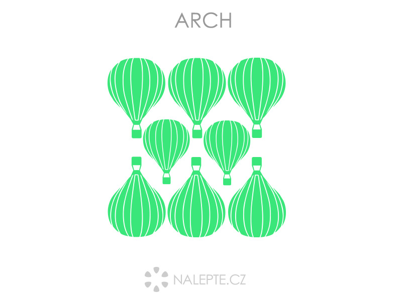 Balení obsahuje 8 ks svítících létajících balónov. 6 ks šíre 6,5 cm a výšky 9 cm a 2 ks šíre 5 cm a výšky 7,2 cm. Dodaný arch sa všami ôsmich létajícími balóny má rozmery 20 x 20 cm. Vhodné lepiť prakticky kamkoľvek napr. na strop či steny v detskej izbe.