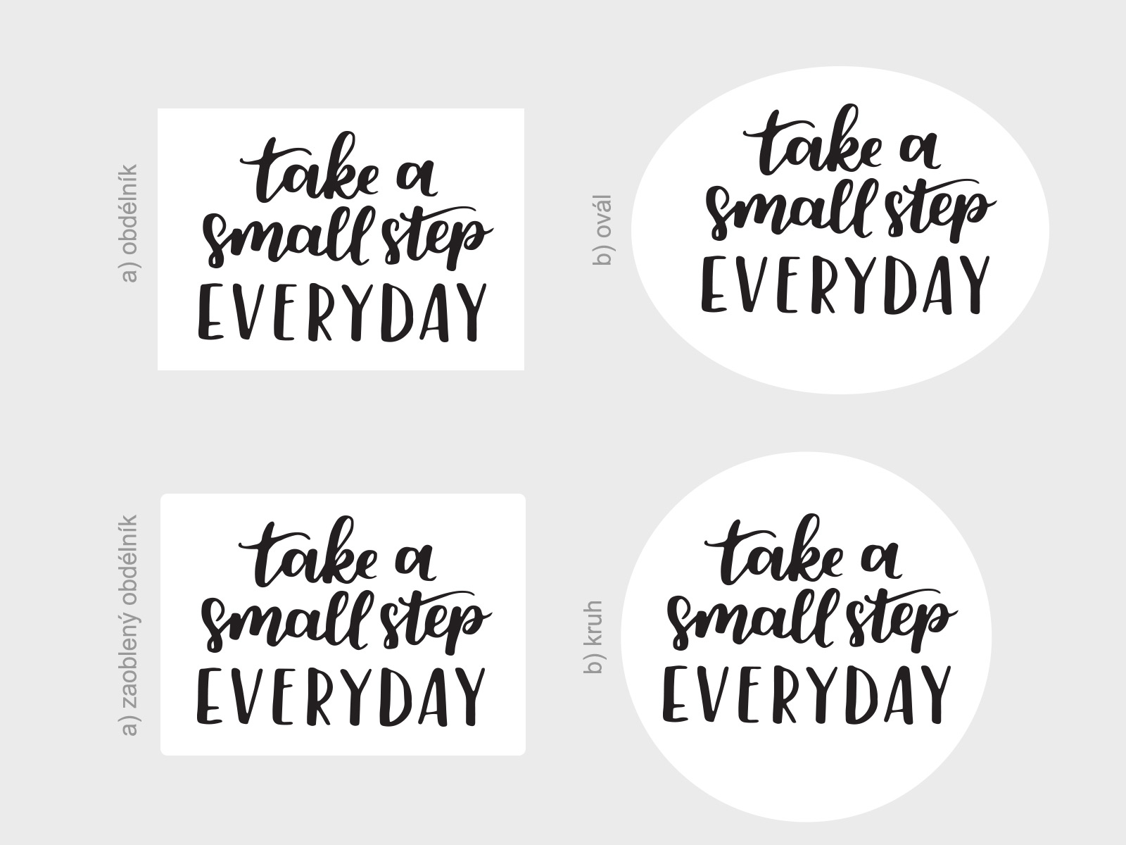 Ak vám nevyhovují preddefinované rozmery, je možné zvoli vlastní rozmer pomocí posuvníku, môžete si také vybrať z cca 50 farieb. Jedná sa o tlač na bielu samolepící vinylovú fóliu s tvarovým orezom. Lepení je jednoduché a bez priehľadné prenosové fólia. Ide o kombináciu bílého pozadí + Vámi vybrané farby. Tvar bílého pozadí je možné zmeniť. Možno vybrať a) obílník, b) ovál, c) zaoblený obdélník, d) kruh viď fotogaléria. Ak teda máte zájem o iný tvar ako na hlavní fotografiu, stačí v posledním kroku objednávky do pola poznámka napísa napr. "ovál". Dostanete email s potvrdením a finálním náhľadom. Není možné zvoli† farbu textu: bielu 010 alebo jednu z metalickích farieb: 090 striíbrná, 091 zlatá; Ak zvolíte jednu z týchto farieb budete kontaktováni ohľadne zmeny farby alebo zrušení objednávky.