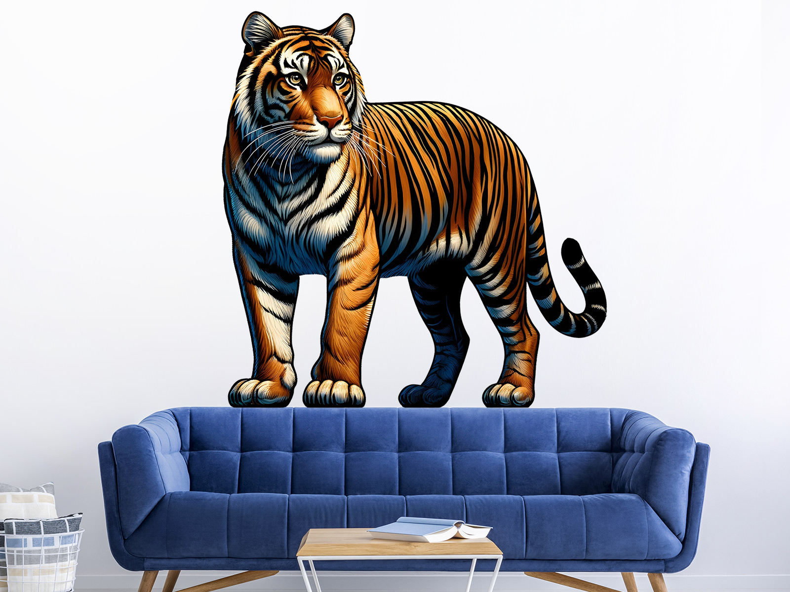 Nálepka na stenu „Tiger“ je výrazný a štýlový prvok, ktorý interiéru dodá silu, eleganciu a nádych divokej prírody. Detailne spracovaný motív tigra v realistickom, mierne ilustračnom štýle pôsobí impozantne a okamžite upúta pozornosť. Presná kresba zdôrazňuje štruktúru srsti, kontrastné pruhy aj výrazný pohľad, vďaka čomu tiger pôsobí živým a dynamickým dojmom. Farebná kombinácia teplých oranžových tónov s tmavými detailmi vytvára atraktívny kontrast, ktorý krásne vynikne na svetlej stene. Nálepka sa skvele hodí do obývacej izby, pracovne, študentskej izby alebo moderného interiéru, kde sa stane dominantným dizajnovým prvkom. Ideálna aj pre milovníkov zvierat a prírodných motívov. Perfektná voľba pre tých, ktorí chcú do svojho domova vniesť silu, charakter a jedinečný vizuálny dojem.