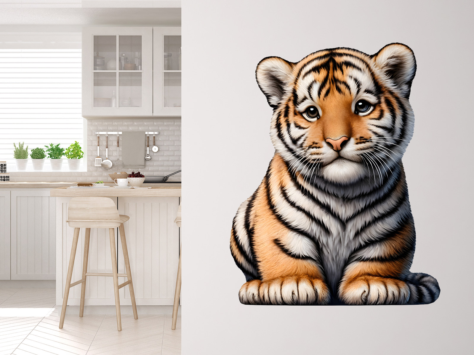 Tento milý tiger prináša do detskej izby pokoj, pocit bezpečia a tichú radosť z objavovania sveta. Jeho jemný pohľad má upokojujúci účinok a vytvára atmosféru, v ktorej sa deti môžu cítiť spokojné, snívať svoje prvé sny a každý deň sa prebúdzať do hravého a láskyplného prostredia. Motív malého tigra je symbolom odvahy, zvedavosti a nežnosti, takže prirodzene dopĺňa priestor plný detskej fantázie a dobrodružstva.