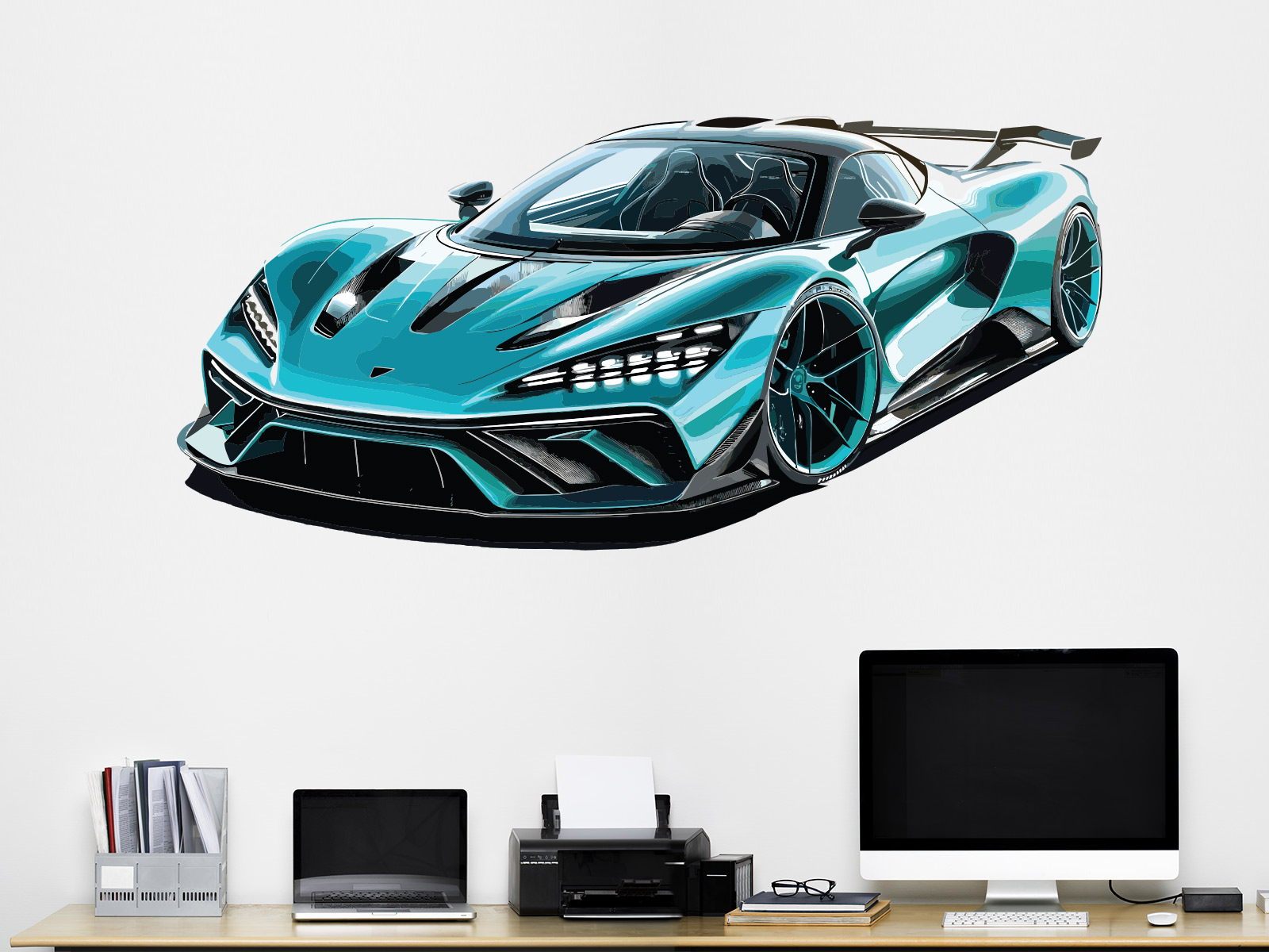Samolepka na stenu „Tyrkysový športák“ zaujme na prví pohľad svojím futuristickým dizajnom, dynamickými líniami a výraznou tyrkysovou farbou, ktorá; dodává interiéru sviežosť, energiu a moderní charakter. Detailne spracovanéý športí vozidlo pôsobí rýchlostí aj elegancí zároveň a skvele vynikne ako v detskej izbe malího milovníka áut, tak v pracovni, herni alebo moderním obývacíom priestore. Ilustrácia evokuje svet superšportov, inovací a adrenalínu a ľahko sa stane dominantním vizuálním prvkom místnosti, ktorý podčiarkne osobitý štýl a vášeň pre výimoćná autá.
