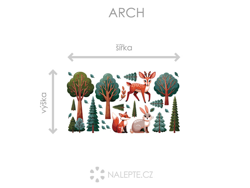 Arch = takto vám bude samolepka doručená. Každý prvok na archu je samostatná samolepka, jednotlivé části jednoduše od papírového podkladu odlepíte a nalepíte na stenu tak, aby zložili výposlední motív podľa Vašich predstáv. Arch si môžte prehliada'a vo fotogalérii. Rozmer archu volíte v objednáke. Prehľad preddefinovaních rozmerov (šírka x výška): a) hárok 47 x 26 cm b) hárok 75 x 42 cm c) hárok 100 x 55 cm d) hárok 130 x 72 cm e) hárok 181 x 100 cm Je možné zvoliť aj ľubovoľneý vlastní rozmer hárku pomocí posuvníku alebo klikání na "Vetší", "Menší"