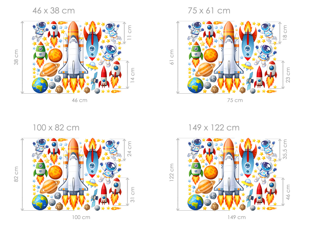 Samolepka na stenu &Bdquo;Vesmírná raketa“ prenesie detský izba prímo do nekonečného vesmíru plného dobrodružstva. a objavování. Dominantní raketoplán doplnenýý o kozmonautov, menší rakety, planéty, satelity a hviezdy vytvárajúí dynamickú vesmírnu scénu, ktorá pôsobí hravo, farebne a zároveň prehľadne. Jednotlivé motívy sú spracované; v priátelském ilustratívnomím štýle a je mo|né ich µubovolne rozmísti†, takže si deti mô|u vytvori vlastní vesmírnou výpravu presne podπa zveré fantázie. Táto samolepka podporuje zvídavosť, predstavivost aj zájem o vesmír a techniku a stane sa výrazným a inšpiratívním prvkom každéej detskej izby, herne alebo kútiku objaviteľa.