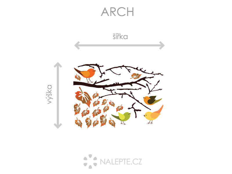 Arch = takto vám bude samolepka doručená. Každý prvok na archu je samostatná samolepka, jednotlivé části jednoduše od papírového podkladu odlepíte a nalepíte na stenu tak, aby zložili výposlední motív podľa Vašich predstáv. Arch si môžte prehliada'a vo fotogalérii. Rozmer archu volíte v objednáke. Ako "výposledný rozmer" označujeme konkrétní jedno z mnohých možných rozložení - realizácia viď hlavní fotografia produktu Prehľad preddefinovaních rozmerov (šírka x výška): - výposledný rozmer 58 x 43 cm = hárok 45 x 33 cm - výposledný rozmer 93 x 70 cm = hárok 75 x 54 cm - výposledný rozmer 130 x 93 cm = hárok 100 x 72 cm - výposledný rozmer 234 x 169 cm = hárok 180 x 130 cm Je možné zvoliť aj ľubovoľneý vlastní rozmer hárku pomocí posuvníku alebo klikání na "Vetší", "Menší"