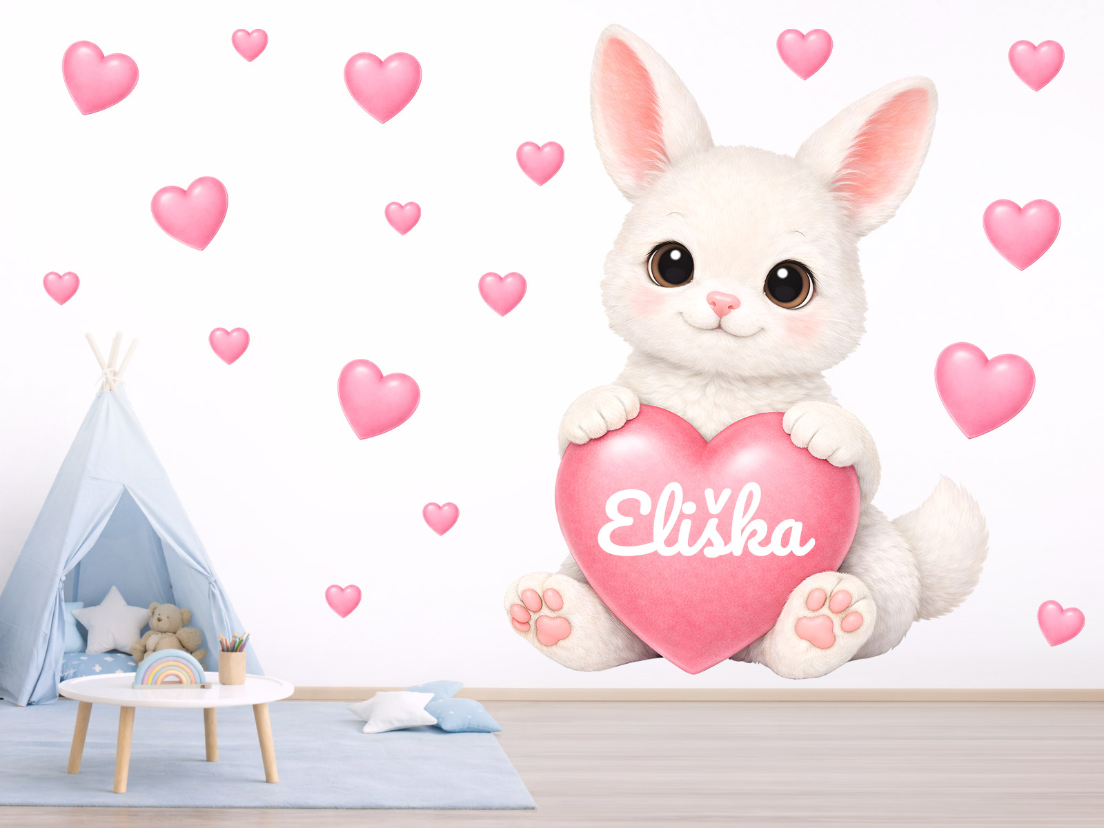 Hľadali ste: Biely zajačik so srdiečkom a menom dekorácie na stenu samolepky na stenu, Zajac so srdiečkom a menom dekorácie na stenu, Králik so srdiečkom a menom samolepiace dekorácie na stene, Zajačik so srdiečkom a menom dekorácie na stenu nálepky na stenu