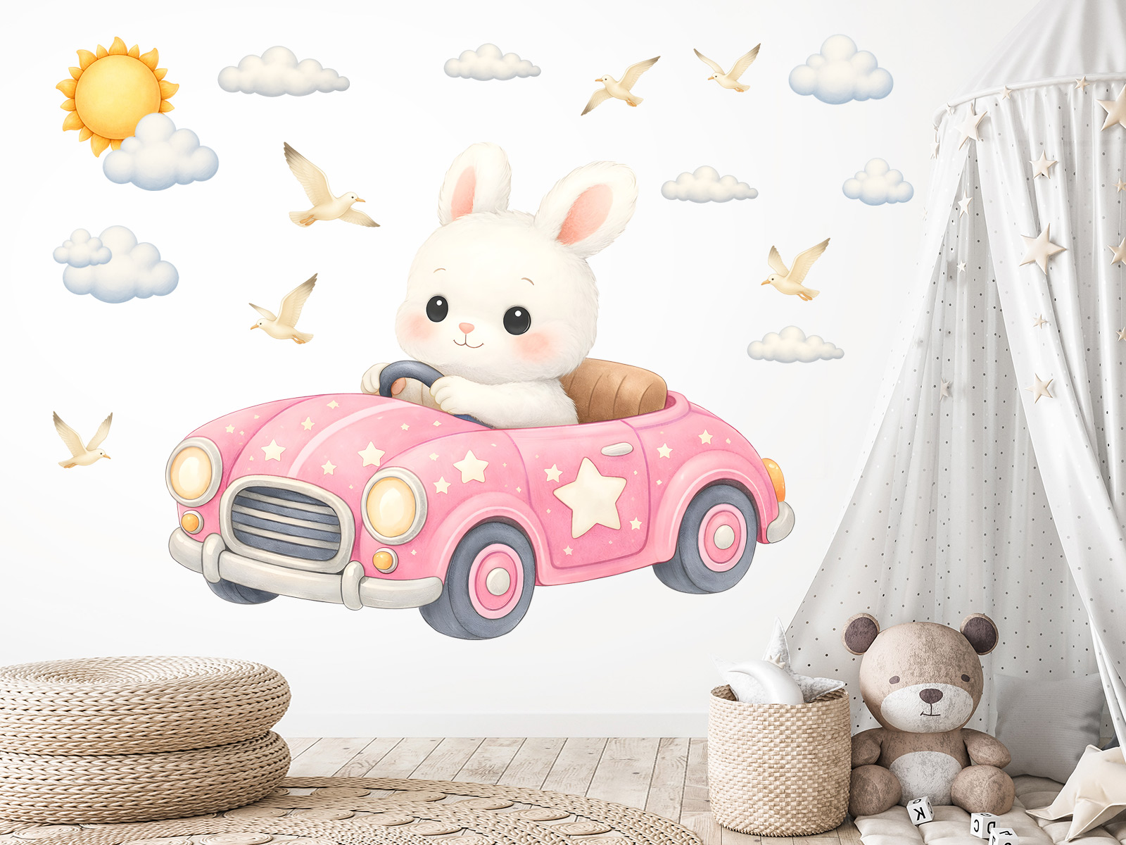 Hľadali ste: Zajačik v autíčku samolepky na stenu, Zajac v autíčku nálepky na stenu, Zajačik v autíčku dekorácie na stene, Zajda v autíčku tapety na stene