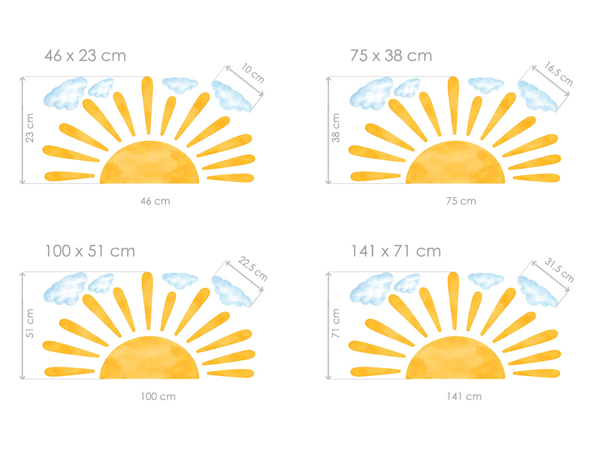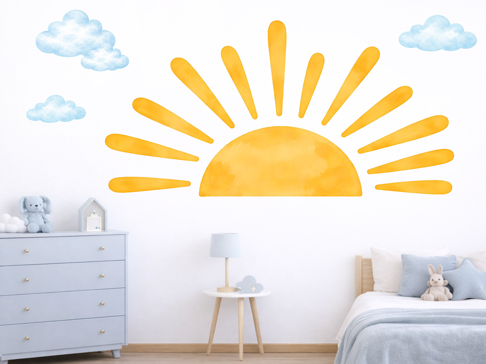 Samolepka na stenu „Zapadající slnko“ prinesie do detskej izby pokojnú, hrejivú atmosféru plnú jemného svetla a pohody. Akvarelovo ladeé slnko s dlh&ou; lúčmi v teplých žltých tónech pôsobí mäkko a prirodzene, zatímco drobneé modré mráčky dodávají celé kompozíciu ľahkosť a vzdušnosť. Motív evokuje pokojneý koniec dňa, podporuje pocit bezpečí a harmónie a krásne sa hodí nad postýlku, poste? alebo do odpočinkového kútika. Díky nadčasovému vzh&adudu a neutrálním farbám je samolepka vhodná pre dievčatká i chlapčekov a ľahko zapadne do škandinívských, pastelových i minimalistických interiérov detských izieb.