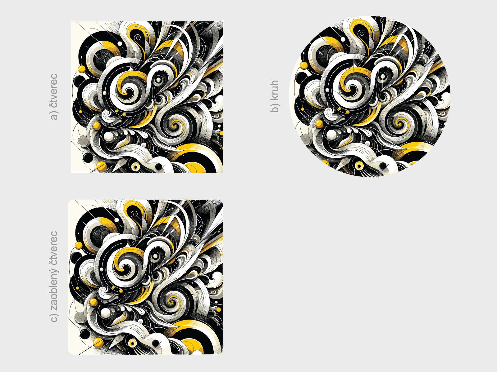 Tvar je možné zmeniť. Možno vybrať a) štvorec, b) kruh, c) zaoblený štvorec viď fotogaléria. Ak teda máte zájem o iný tvar ako na hlavní fotografiu, stačí v posledním kroku objednávky do pola poznámka napísa napr. "štvorec". Jedná sa o tištený samolepící plakát - imitácia maľby Je možné zvoliť aj ľubovoľneý vlastní rozmer hárku pomocí posuvníku alebo klikání na "Vetší", "Menší"